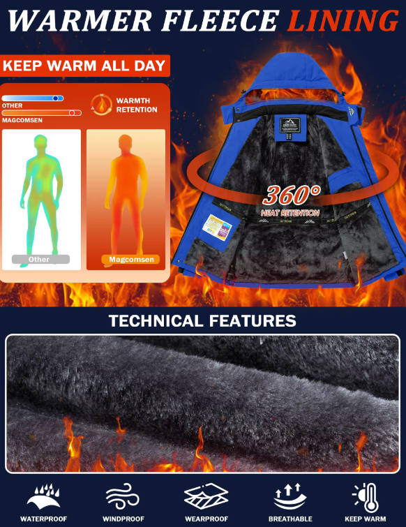 Stay Warm, Dry & Ready for Any Adventure with the Men’s Waterproof Fleece-Lined Winter Parka